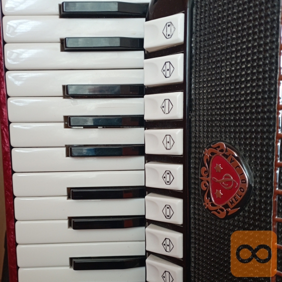 Klavirska, melodija manon, Prodam klavirsko harmoniko znamke Melodija Manon.Harmonika je rdeče bareve, 80-basna in ima 3 k...