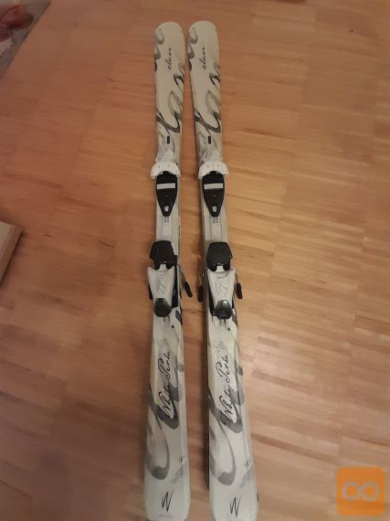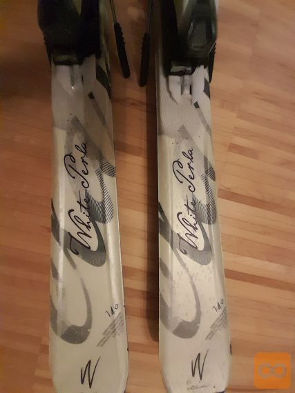 Prodam 7j let stare, srednje ohranjene (bele) ženske smuči ELAN WHITE PERLA z vezmi, VELIKOST 146 cm.